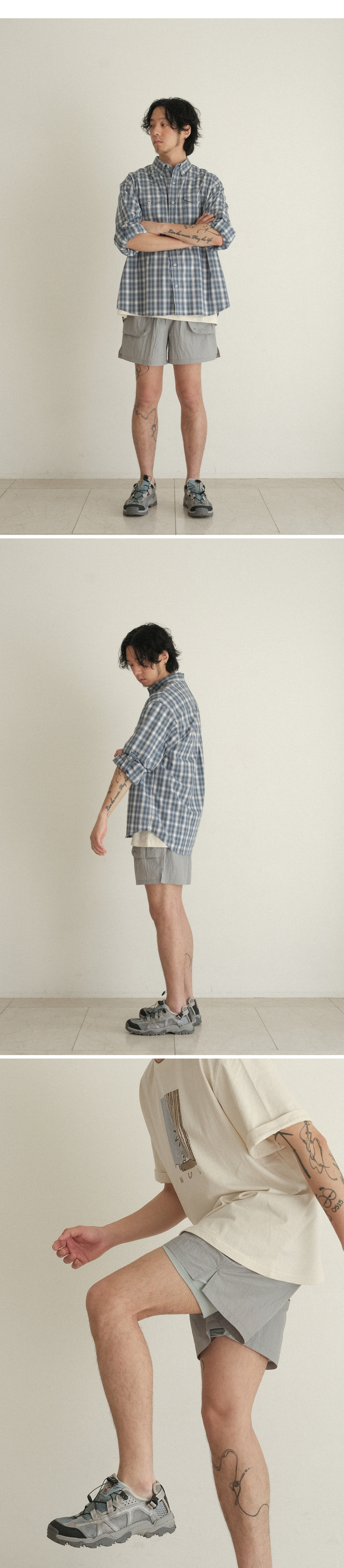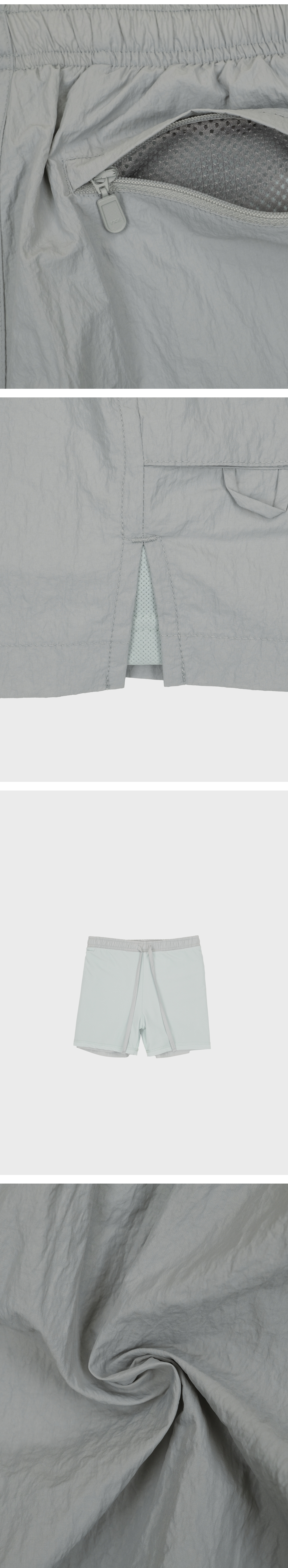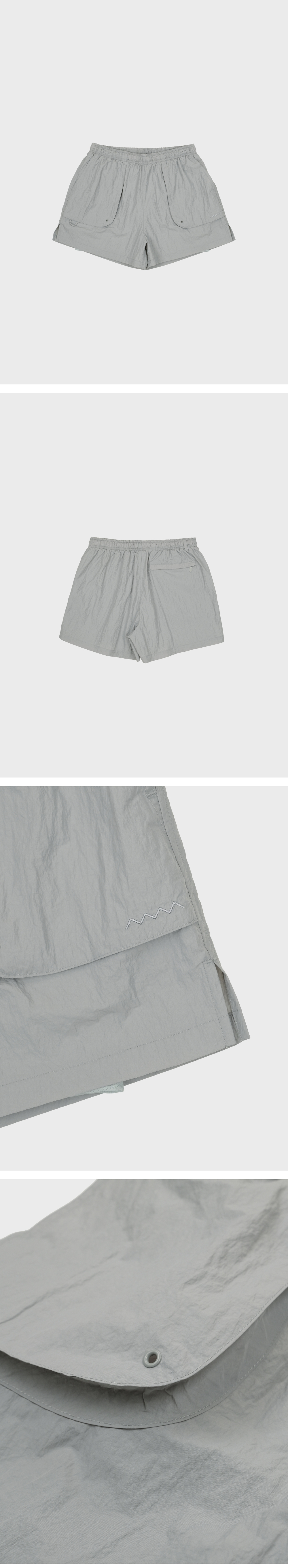 -가볍고 자연스러운 주름이 있는 나일론 원단으로 빠른 건조가 특징 -내구성과 통기성이 좋고 신축성이 우수한 레깅스 소재의 안감으로 더운 날에도 산뜻하게 착용 가능 -투인원 쇼츠로 짧은 기장감의 부담을 줄이고 몸에 감기는 느낌이 좋게 제작 -입체감이 있는 에메모만의 패턴 앞 포켓 -가벼운 소지품을 걸 수 있도록 뒷면 허리 벨트와 오른쪽 앞 포켓 하단에 고리 부착 -일상과 여행, 가벼운 운동, 수영복으로도 활용 가능 무더운 여름, 언제든 물가로 뛰어들어도 괜찮아요! color : brown, charcoal, gray fabric : 겉감 : nylon 100% 안감 : nylon 78%, polyurethane 22% 포켓 : polyester 100% materials : ykk zipper, ykk eyelet model : w 162 / 42 (1 size) m 176 / 65 (3 size)