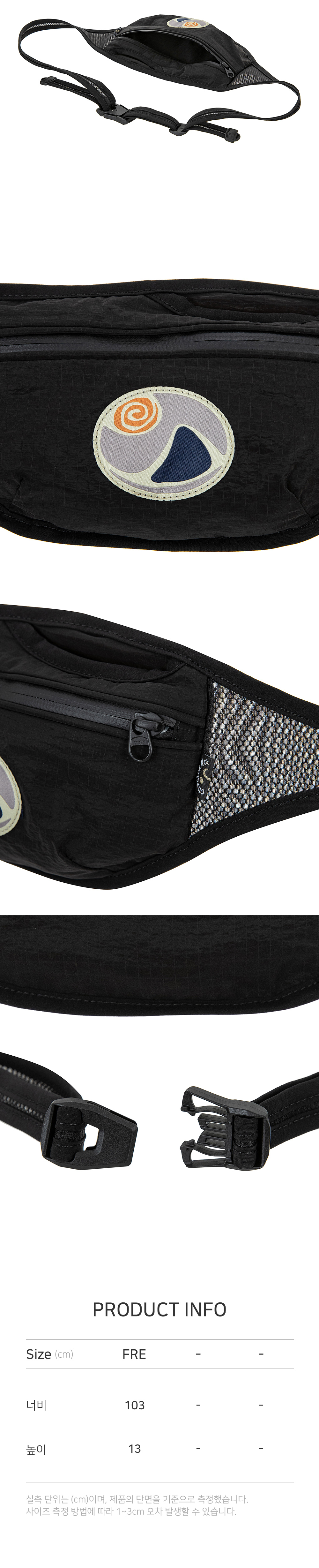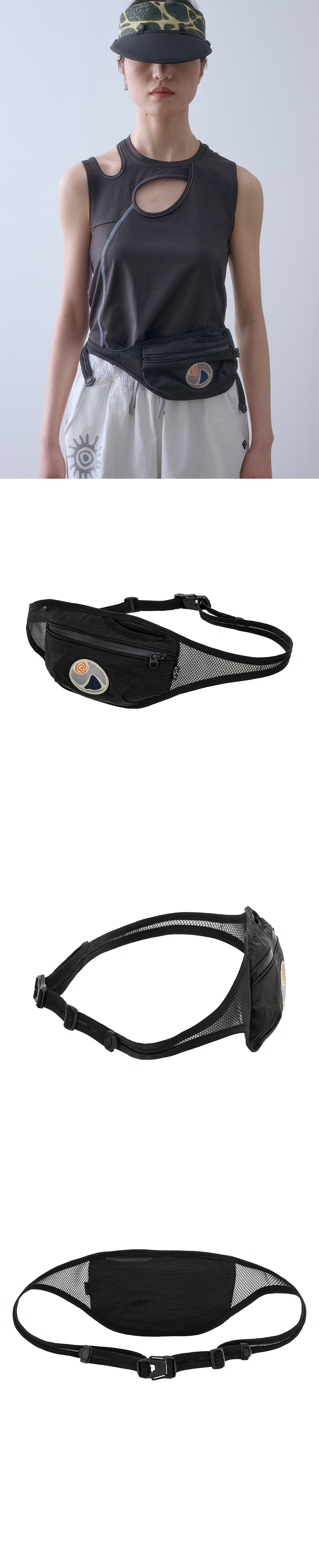 여권 수납을 위한 미니 백 콘셉트로 제작되었으며, 통기성과 경량감을 높인 메쉬 스트랩과 시즌 콘셉트 라벨, YKK® 나일론 지퍼 및 WOOJIN PLASTIC® 부자재가 적용된 웨이스트 파우치입니다.