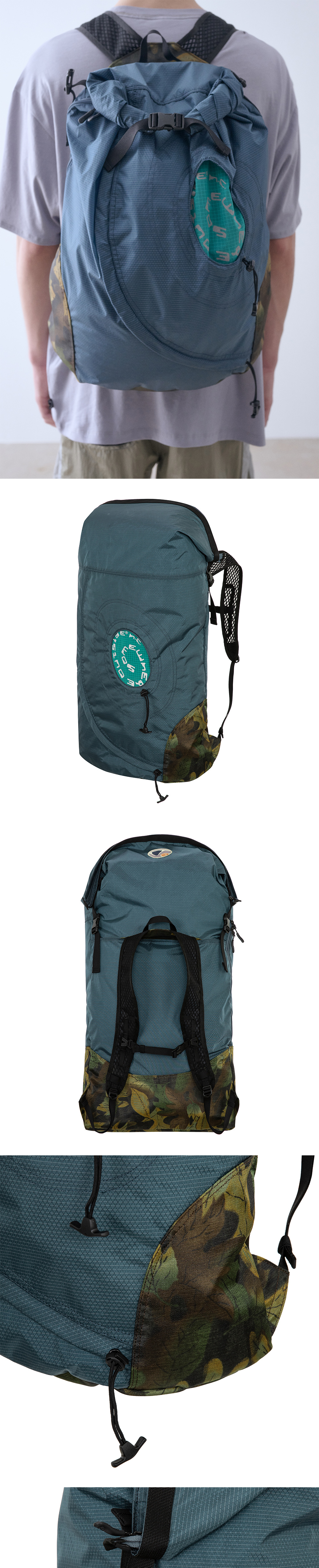 에메랄드 컬러 전면 수납 포인트와 리플렉티브 SOHC 레터링, 조절 가능한 롤탑 구조, 메쉬 숄더 스트랩, WOOJIN PLASTIC® 부자재가 적용된 30L 백팩입니다.
