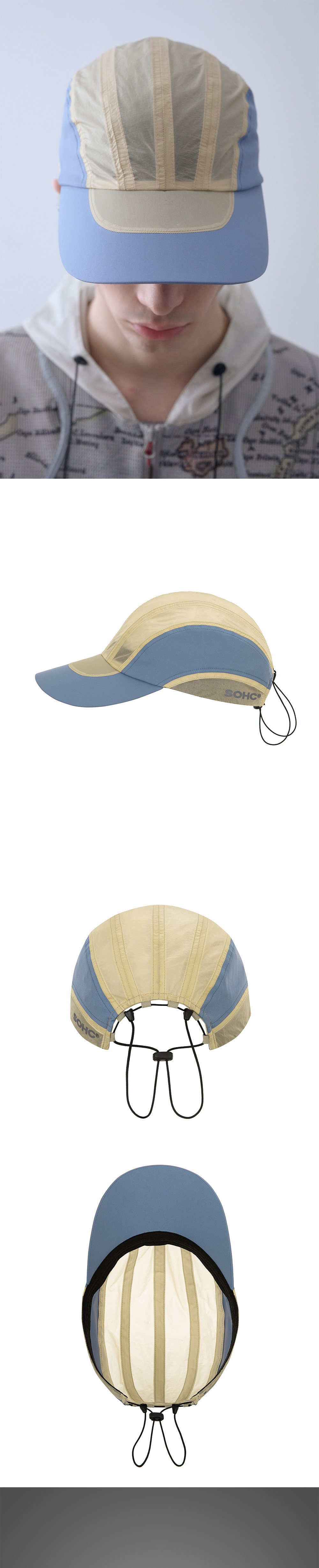 반투명 원단과 측면 SOHC 반사 레터링 그래픽, 후면 오리지널 스트링 조절 시스템, WOOJIN PLASTIC® 부품이 적용된 러닝 캡입니다.
