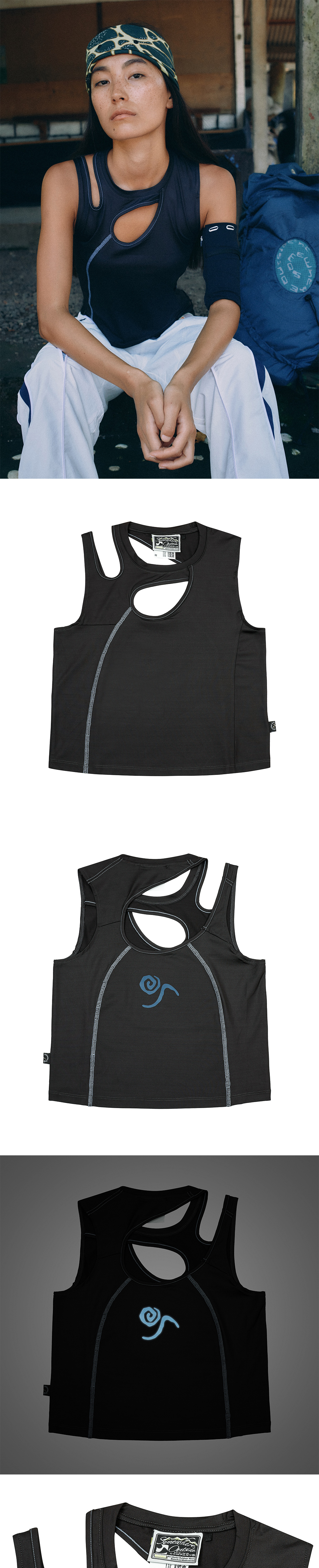 전·후면 컷아웃 디테일과 컬러 배색 스티치가 포인트로 더해졌으며, 기능성 스트레치 원단과 등판 리플렉티브 그래픽 로고로 활동성과 착용감을 높인 탱크탑입니다.