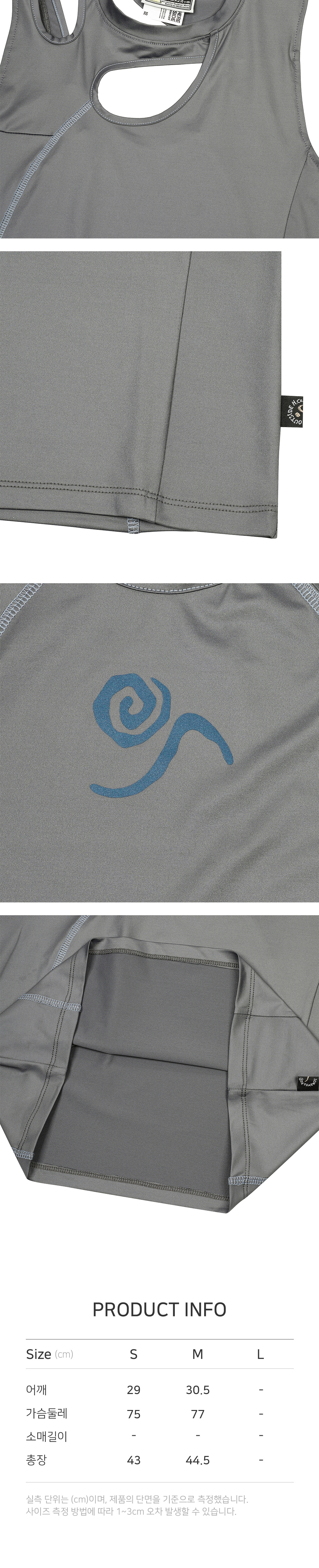 썸웨어아웃사이드 커브드 컷아웃 탱크탑 차콜