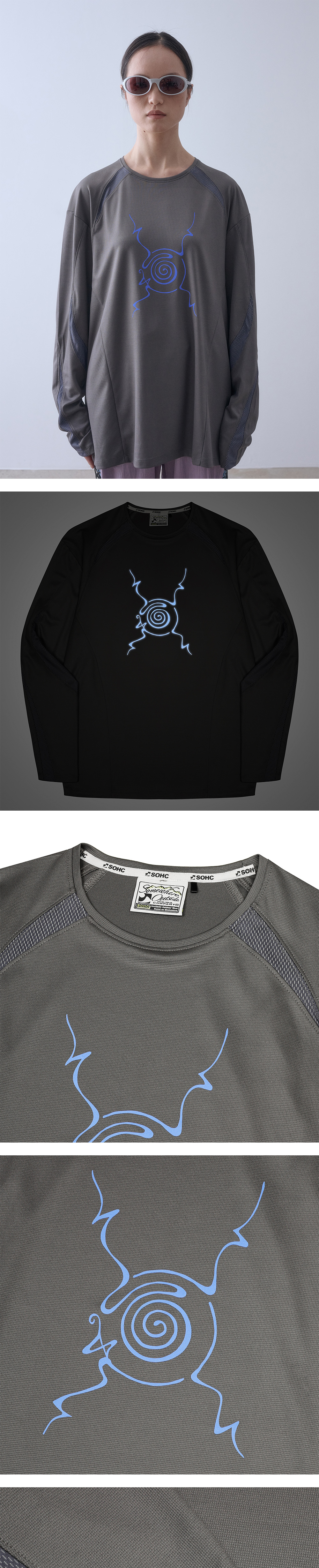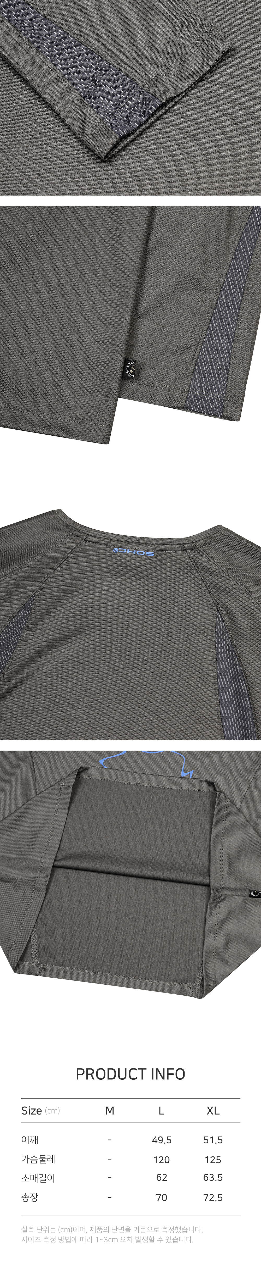 냉각 기능성 원단과 공기 순환을 위한 메쉬 패널이 적용되었으며, 전면 반사 프린트 그래픽과 등판 SOHC 레터링, 사이드 심 시즌 컨셉 라벨이 특징인 하이킹 롱슬리브입니다.
