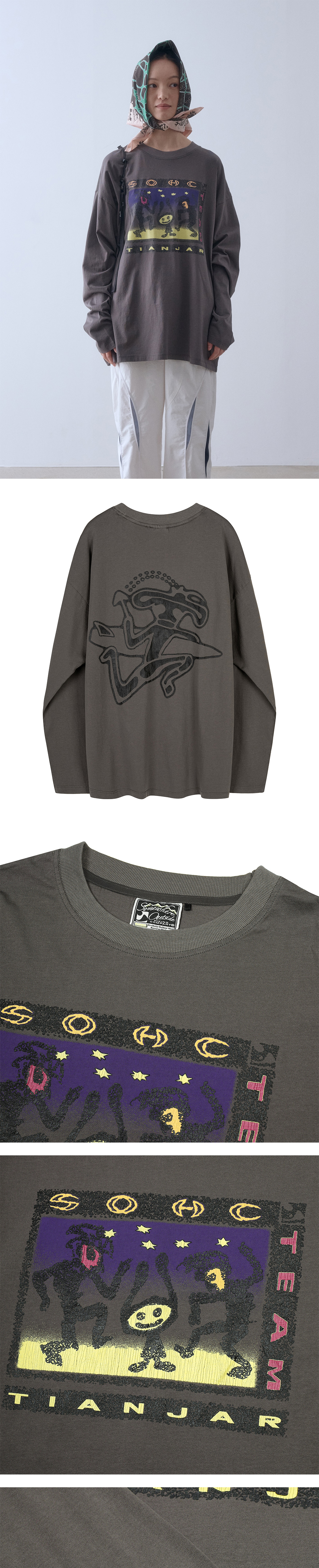 발리 지역 TIANJAR에서 영감을 받은 긴팔 셔츠로, 2025 S/S 시즌 룩북의 메인 컨셉과 촬영 장소로 선정되었으며, 빈티지 크랙 텍스처 프린트와 가먼트 워싱, 시즌 라벨 디테일이 더해졌습니다.