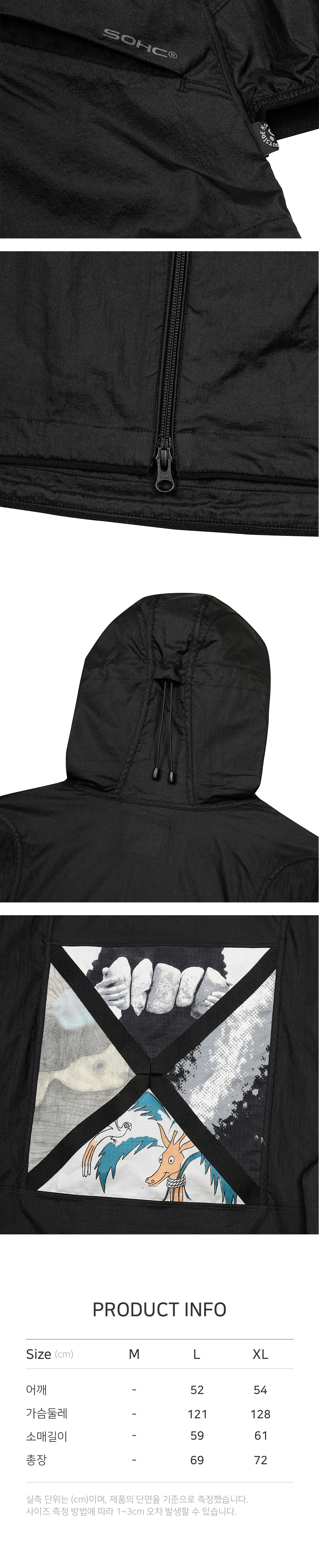 방사형 라인 디테일과 조절 가능한 후드 디자인이 돋보이며, 시즌 그래픽과 SOHC 커스텀 지퍼 풀러가 더해진 YKK® 나일론 지퍼 윈드브레이커입니다.