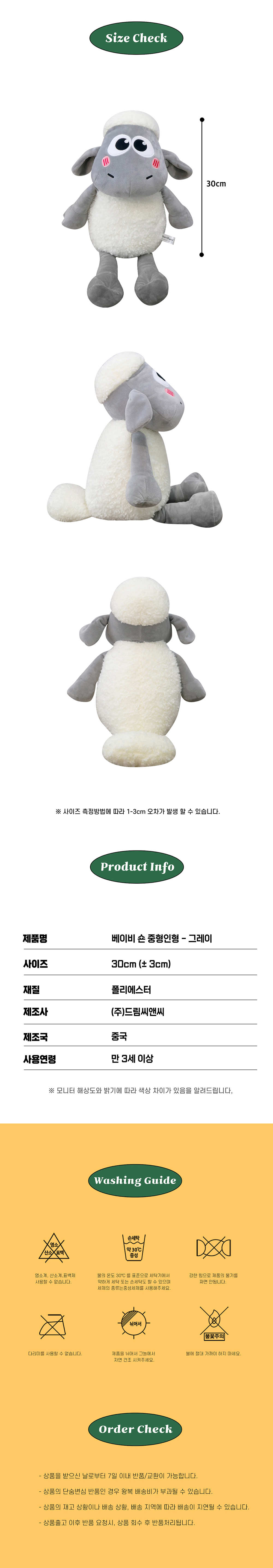 드림씨앤씨 베이비 숀더쉽 그레이 중형인형 30cm