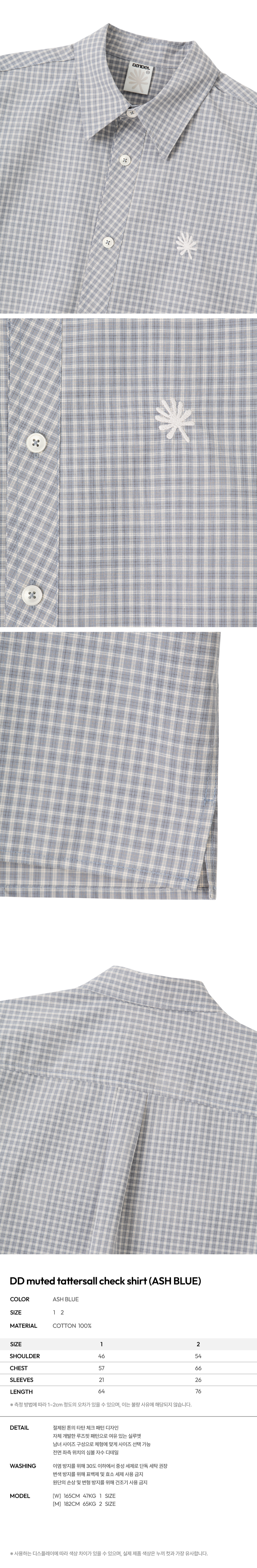 단델 뮤티드 태터솔 체크 셔츠 애쉬 블루
