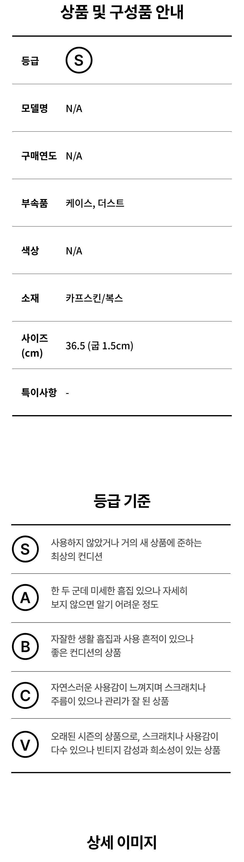 모든 상품(가죽, 의류, 잡화, 슈즈 등)은 사용자의 사용방법과 환경에 따라 변형, 변색이 될 수 있으니 반드시 취급 라벨에 표시된 관리 안내를 따르시길 권장 드립니다. 이는 정도의 차이가 있으며 과도한 체열과 땀, 습기, 빛, 마찰은 제품의 손상 및 변형을 일으킬 수 있으므로 주의하시길 바랍니다.