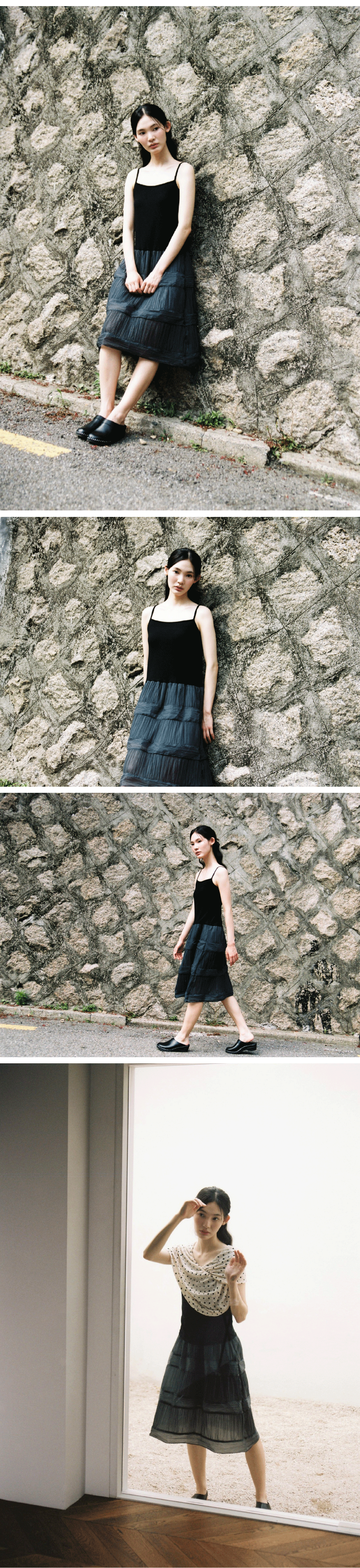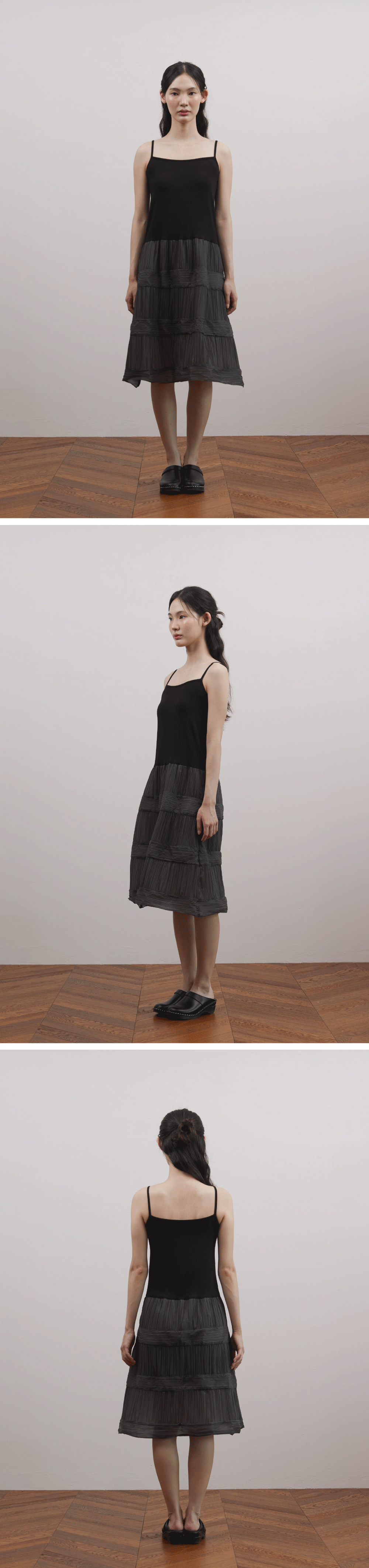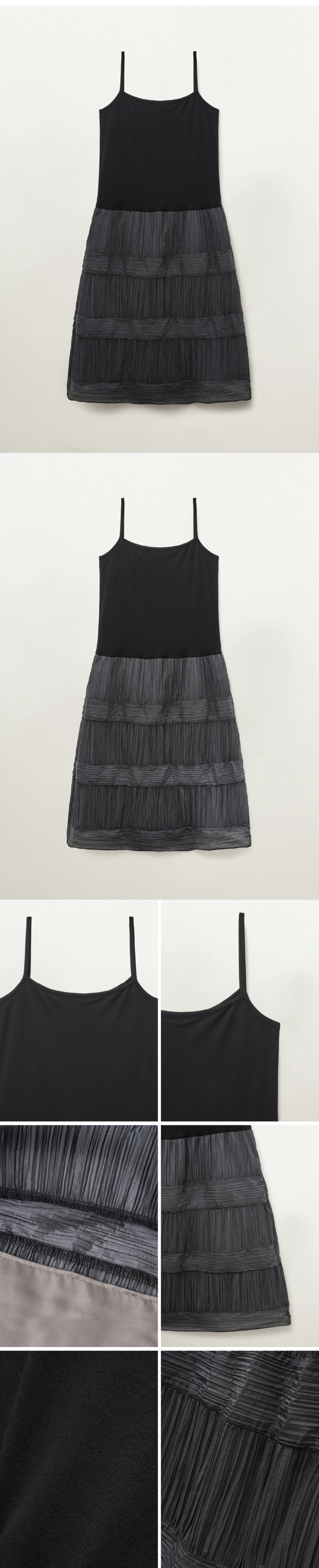 - 시어소재 플리츠 원피스 - 원단 배색 - 상의 원단; 부드러운 착용감으로 편한 착용감 - 하단 플리츠 플레어 핏 - 하단부 안감 *착용법: 착용 후, 안감을 아래로 내려 마무리 BODY1 RAYON 96 SPAN 4 / BODY2 NYLON 100 / LINING POLYESTER 100 드라이클리닝 권장 (고온 스팀 및 다림질 금지, 건조기 사용 금지)