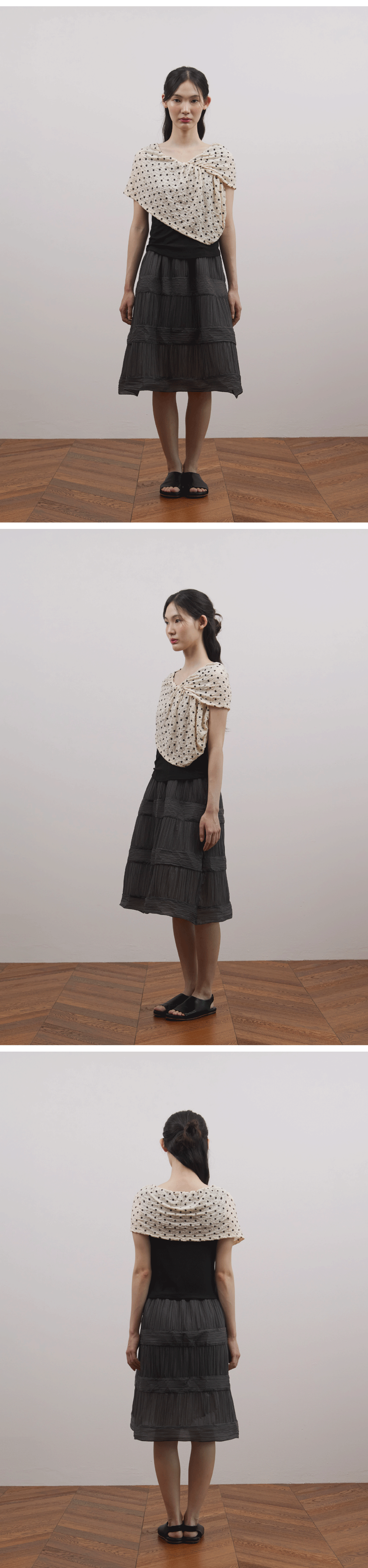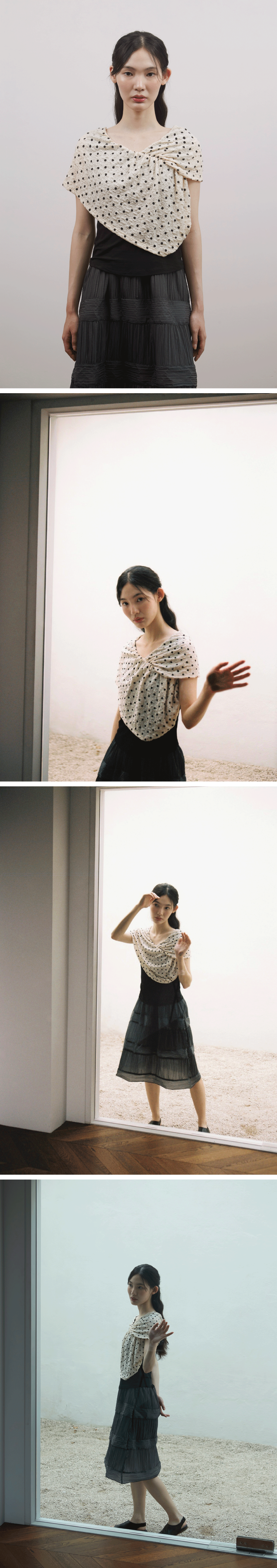 - 도트 패턴의 볼레로가 레이어드 된 슬리브리스 - 슬림 핏 - 와이드한 넥라인 - 높은 신축성으로 편안한 착용감 - 원단 배색 * 착용법: 도트 볼레로를 위로 걷어 슬리브리스를 착용 후, 도트 볼레로를 아래로 내려 마무리 BODY1 RAYON 70 NYLON 25 SPAN 5 / BODY2 RAYON 96 SPAN 4 드라이클리닝 권장 (건조기 사용 금지)
