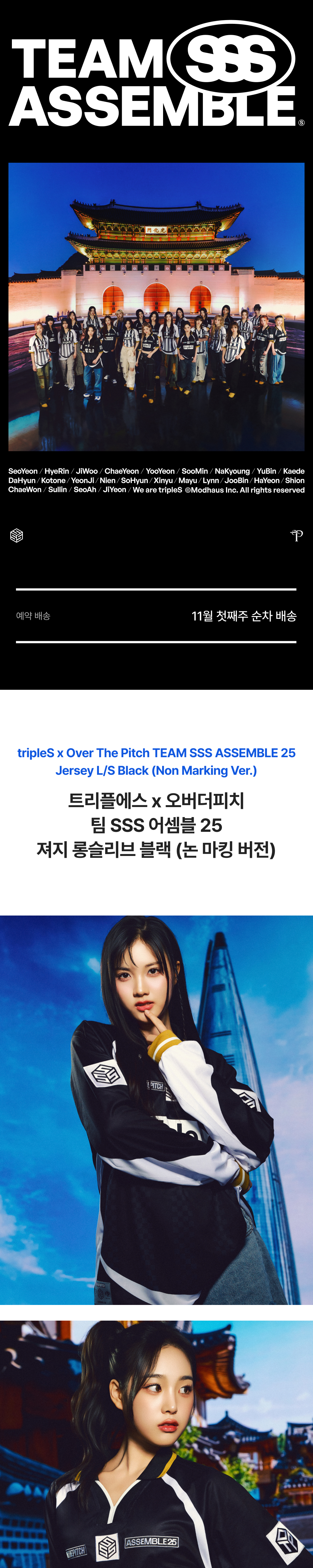 트리플에스 x 오버더피치 팀 SSS 어셈블 25 져지 롱슬리브 블랙 (논 마킹 버전)