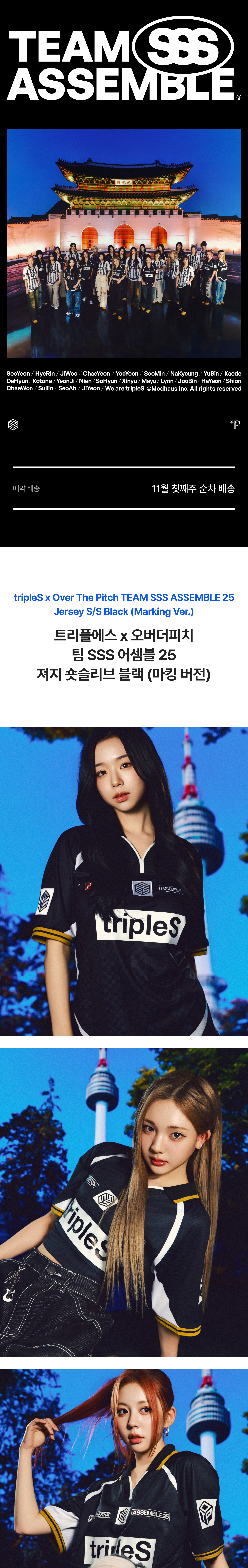 트리플에스 x 오버더피치 팀 SSS 어셈블 25 져지 숏슬리브 블랙 (마킹 버전)