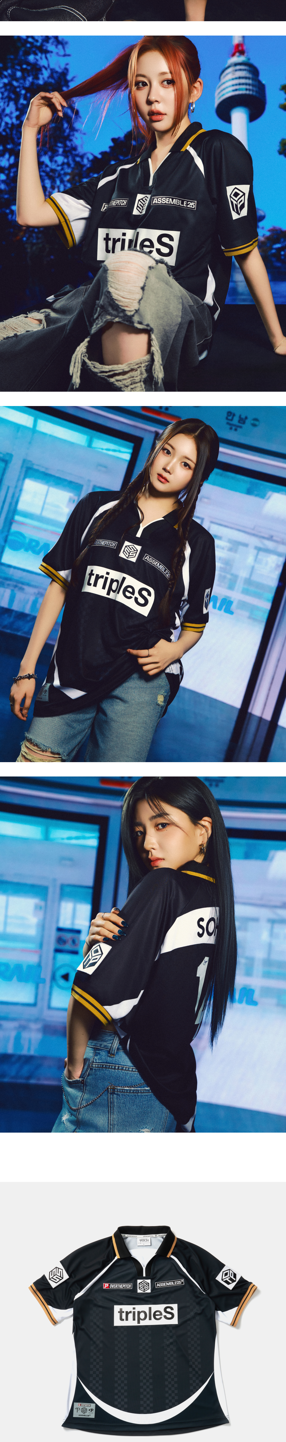 트리플에스 x 오버더피치 팀 SSS 어셈블 25 져지 숏슬리브 블랙 (논 마킹 버전)
