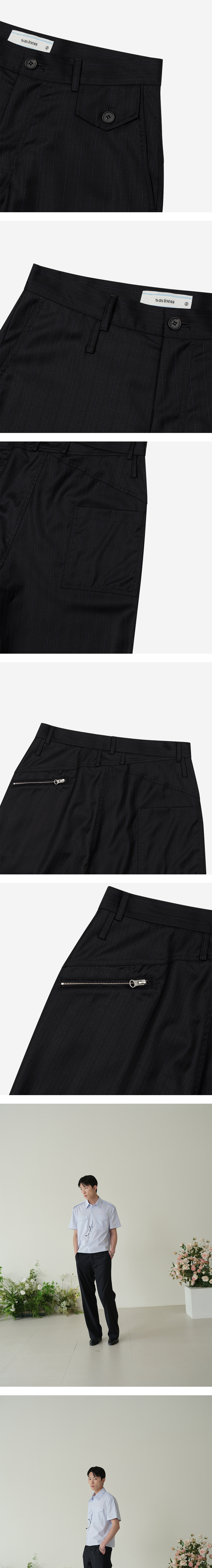 - 컬러마다 다르게 셀렉되어 제작된 데드스탁 섬머 울 패브릭 - 섹시한 분위기의 스트레이트 실루엣 - 전면부 포켓 덮개 디테일 - 레이어드 벨트 고리 디테일 - 후면부 웨이비니스 시그니처 디테일 - YKK ZIPPER - 웨이비니스 로고 각인 소뿔 단추 - 내부 봉제 파이핑 작업 - Color Charcoal, Black, Brown - Outshell Charcoal : Wool 97%, Span 3% Black : Wool 100% Brown : Wool 100% - SIZE 1 : 허리 39 허벅지 33 밑단 26 밑위 31 총장 110 2 : 허리 41 허벅지 34 밑단 27 밑위 31.5 총장 111 3 : 허리 43 허벅지 45 밑단 28 밑위 32 총장 112 MODEL 183cm 66kg 186cm 68kg 184cm 63kg 2SIZE 착용