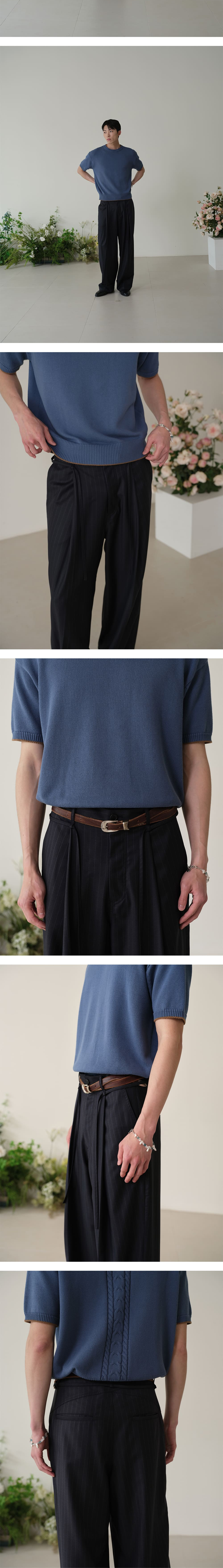 Waviness Deep One Tuck Turn Up Slacks Black Stripe