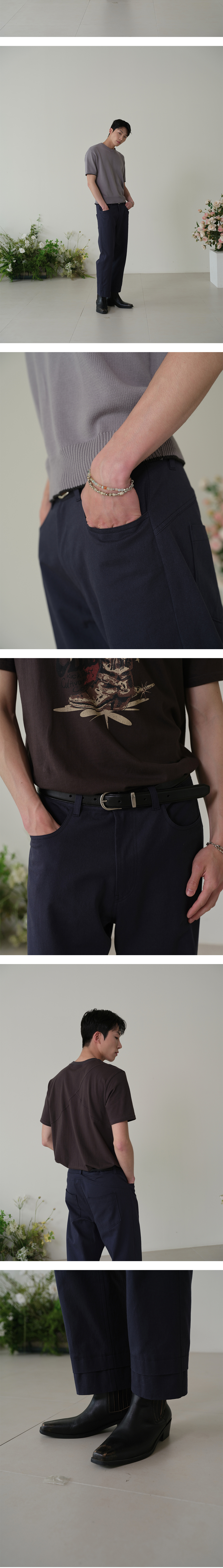 - 16수 고밀도 트윌 코튼 패브릭 - 바이오워싱 처리 되어 오랜 사용에도 자연스러운 에이징이 가능한 코튼 패브릭 원단 - 크롭한 기장감 - YKK ZIPPER - 후면부 웨이비니스 시그니처 디테일 - 웨이비니스 로고 각인 단추 - 스트레이트하게 떨어지는 팬츠 실루엣 - 밑단 더블 레이어드 마감 - Color Beige / Navy / Graphite - Outshell Cotton 100% SIZE 1 : 허리 39 허벅지 31 밑단 22 밑위 29 총장 94 2 : 허리 41 허벅지 32 밑단 22.5 밑위 30 총장 95 3 : 허리 43 허벅지 33 밑단 23 밑위 31 총장 96 MODEL 183cm 66kg 3SIZE 착용 186cm 68kg 3SIZE 착용 184cm 63kg 3SIZE 착용