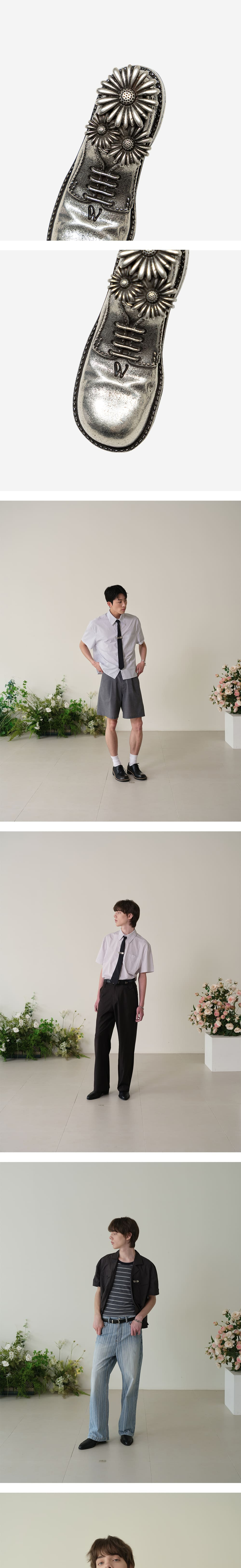 - 웨이비니스 섬머 시즌 테마였던 유리화원을 토대로 한 더비슈즈에 꽃이 담긴 모양의 타이핀 디자인 - 타이핀과 아웃포켓에 탈부착하는 형태의 브로치로서의 활용가능 - Outshell Zinc 100% - SIZE 21mm x 60mm