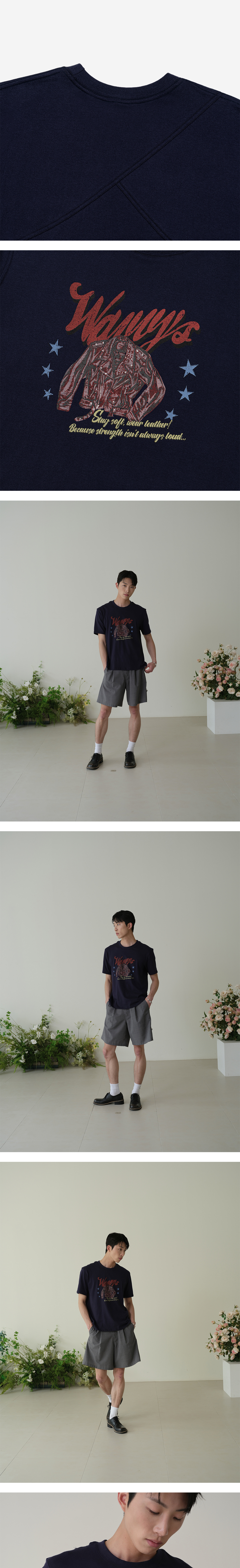 - 텐타 덤불 워싱 가공된 변형이 적은 코튼 패브릭 - 후면 웨이비니스 시그니처 디테일 - 화이트 컬러에 사용된 패브릭은 30수 2합으로 제작되어 비슷한 두께의 16수보다 내구성 면에서 우수함 - 아더컬러들은 20수 싱글 소재로 사용되어 통기성이 우수함 - 넥라인과 암홀 갈라 스티치 작업을 통해 늘어남 방지 봉제 - 락시크한 분위기의 레더자켓이 더해진 그래픽 티셔츠 - Color Burgundy, Navy, Charcoal, White - Outshell Cotton 100% - SIZE 1 : 어깨 48 가슴 54 소매 24 총장 64 2 : 어깨 50 가슴 56 소매 25 총장 65 3 : 어깨 52 가슴 58 소매 26 총장 66 MODEL 183cm 66kg 186cm 68kg 184cm 63kg 2SIZE 착용