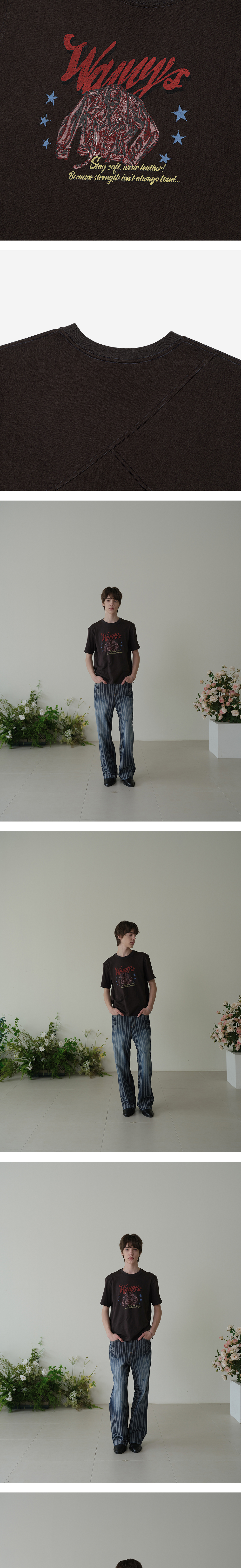 - 텐타 덤불 워싱 가공된 변형이 적은 코튼 패브릭 - 후면 웨이비니스 시그니처 디테일 - 화이트 컬러에 사용된 패브릭은 30수 2합으로 제작되어 비슷한 두께의 16수보다 내구성 면에서 우수함 - 아더컬러들은 20수 싱글 소재로 사용되어 통기성이 우수함 - 넥라인과 암홀 갈라 스티치 작업을 통해 늘어남 방지 봉제 - 락시크한 분위기의 레더자켓이 더해진 그래픽 티셔츠 - Color Burgundy, Navy, Charcoal, White - Outshell Cotton 100% - SIZE 1 : 어깨 48 가슴 54 소매 24 총장 64 2 : 어깨 50 가슴 56 소매 25 총장 65 3 : 어깨 52 가슴 58 소매 26 총장 66 MODEL 183cm 66kg 186cm 68kg 184cm 63kg 2SIZE 착용