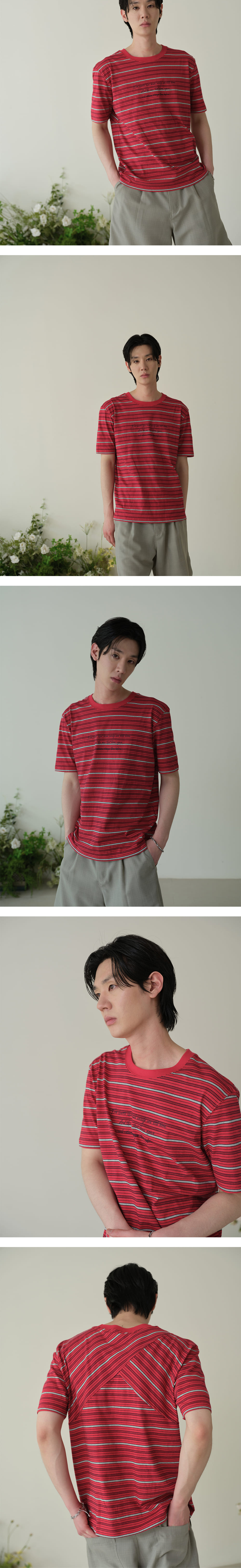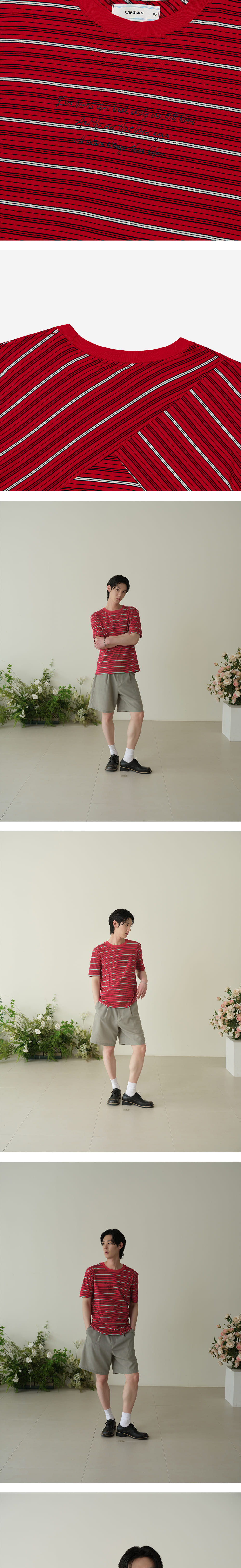 - 텐타 덤불 워싱 가공된 변형이 적은 코튼 스트라이프 레터링 티셔츠 디자인 - "깨지기 쉬운 마음도 피어난다. 새로 피어나는 마음은 전보다 훨씬 단단하리라." 슬로건이 적혀 있는 시즌 테마 티셔츠 - 넥라인과 암홀 갈라 스티치 작업을 통해 늘어남 방지 봉제 - 웨이비니스 후면 시그니처 디테일 - Red 컬러에는 20수 싱글, Navy 컬러에는 10수 싱글 패브릭 사용 - Color Navy, Red - Outshell Cotton 100% - SIZE 1 : 어깨 48 가슴 54 소매 23.5 총장 64 2 : 어깨 50 가슴 56 소매 24.5 총장 65 3 : 어깨 52 가슴 58 소매 25.5 총장 66 MODEL 183cm 66kg 2SIZE 착용 186cm 68kg 2SIZE 착용 184cm 63kg 2SIZE 착용