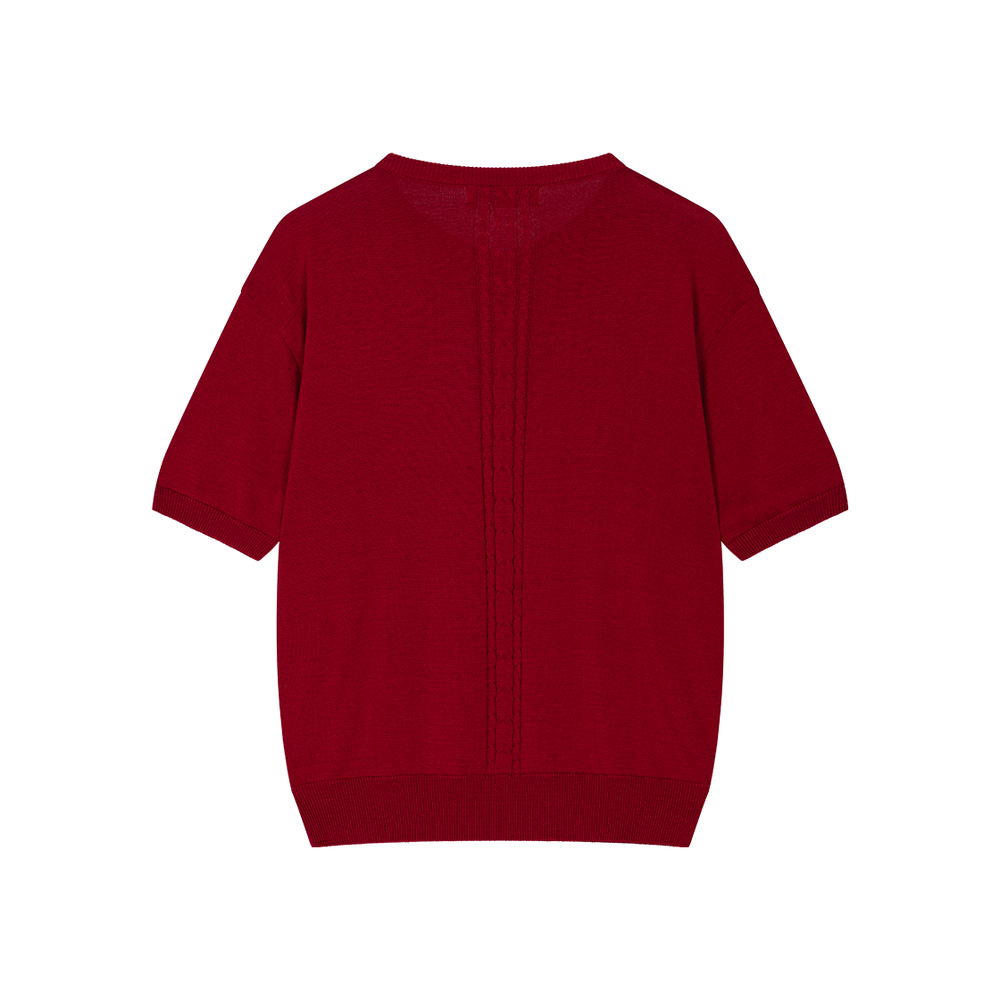 Waviness Diagonal Flow Henley Neck Half Knit Red