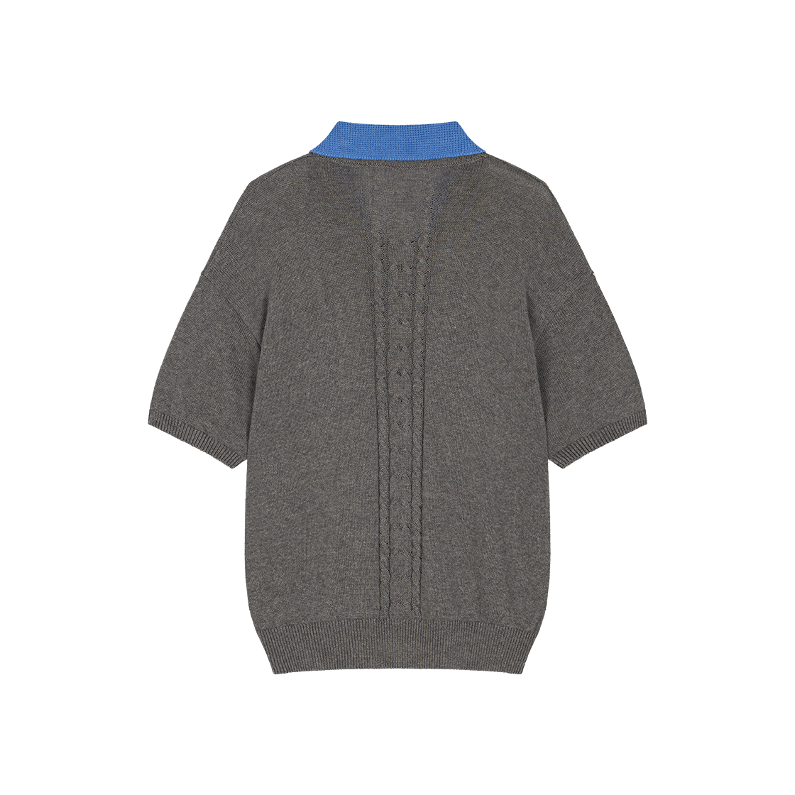 Waviness Toggled Petal Collar V-Neck Half Knit Grey Blue
