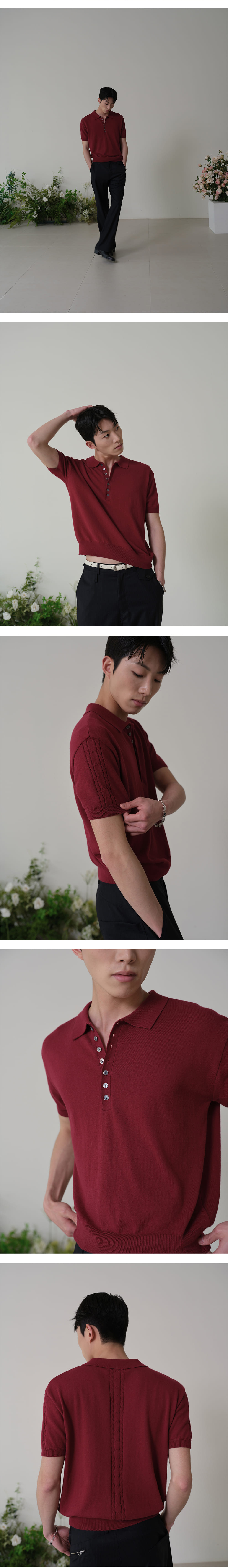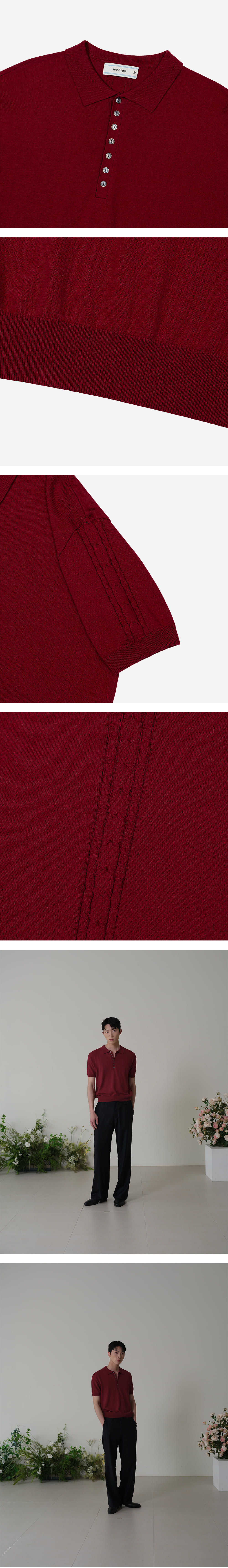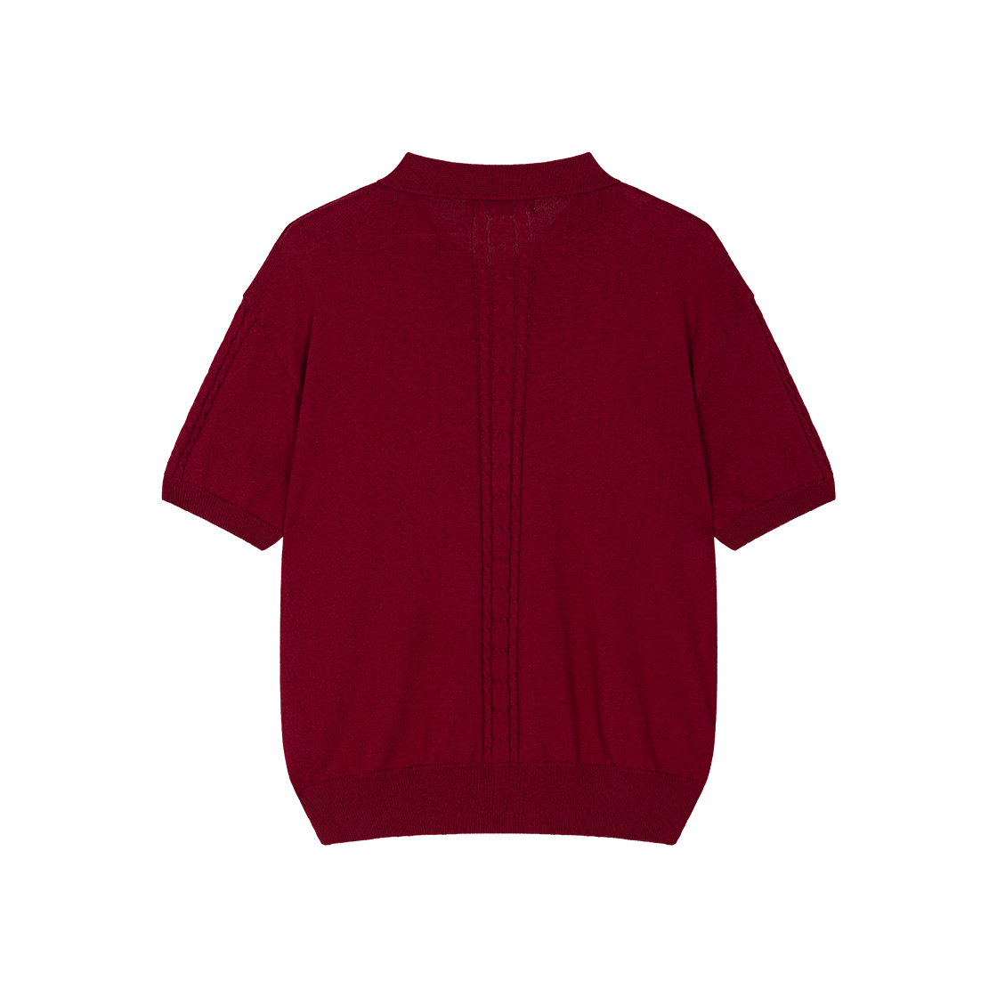 Waviness Linear Bloom Half Collar Knit Cherry Red