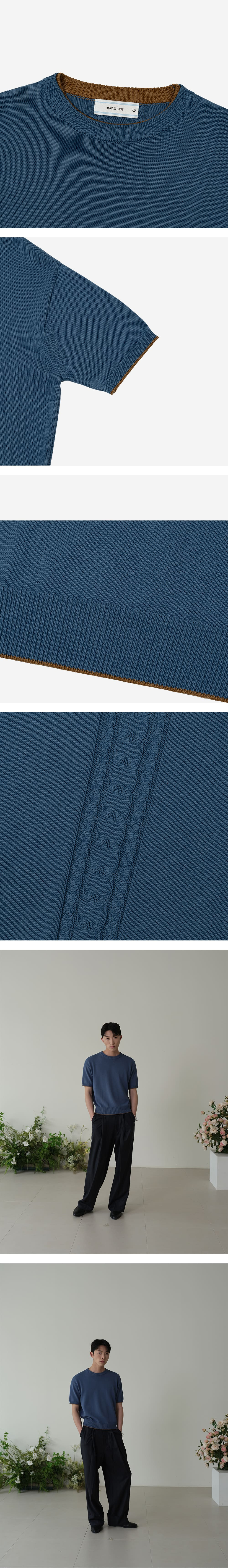 Waviness Drift Round-Neck Half Knit Turquoise Brown