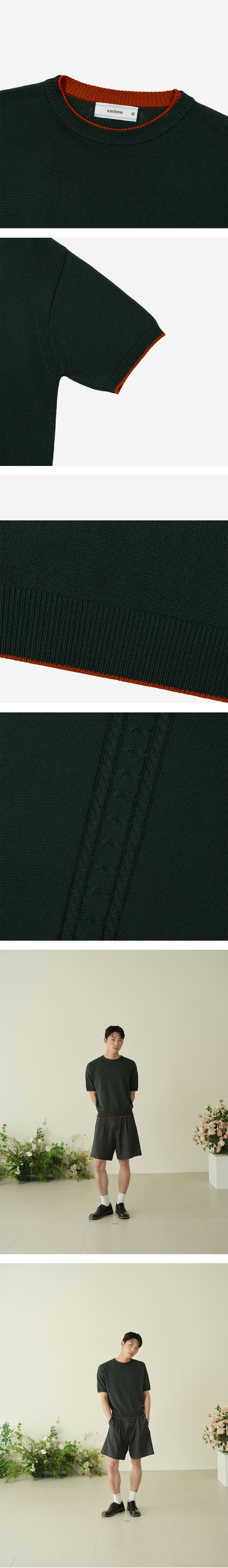 웨이비니스 드리프트 라운드넥 하프 니트 그린 오렌지