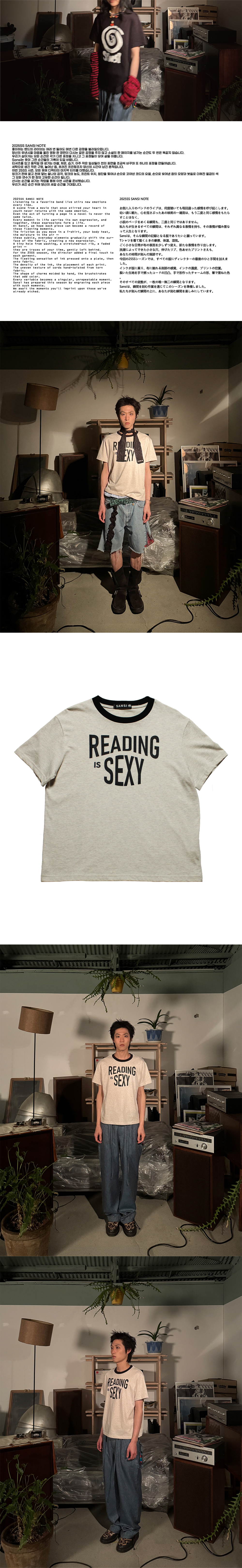 Sansi의 그래픽 티셔츠는 디렉터가 직접 제작한 실크스크린 판으로 하나하나 손으로 프린팅됩니다. 프린팅 과정에서 생기는 미세한 차이 — 잉크의 양, 위치, 틀어짐 등은 모두 의도된 결과이며, 이는 기계로 찍어낸 옷에서는 느낄 수 없는 오직 당신만의 유일한 한 장을 의미합니다. Material -Cotton 100% - 머서라이징 가공으로 은은한 광택과 가볍고 부드러운 촉감을 가진 원단 **Fit Guide • M Size: Boxy fit for ~170cm Semi-cropped fit for 170–180cm • L Size: Oversized boxy fit for all heights • MODEL WOMAN 167CM MAN 178CM