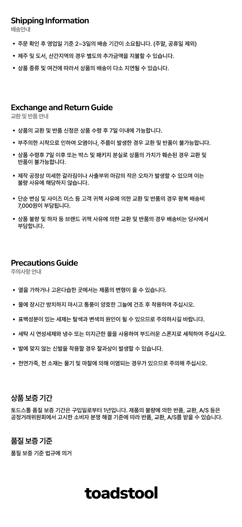 교환 및 반품 안내