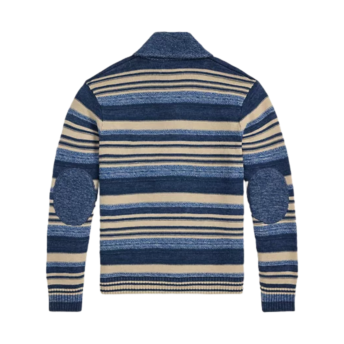 Double RL Indigo Stripe Cotton Linen Cardigan Indigo Multi