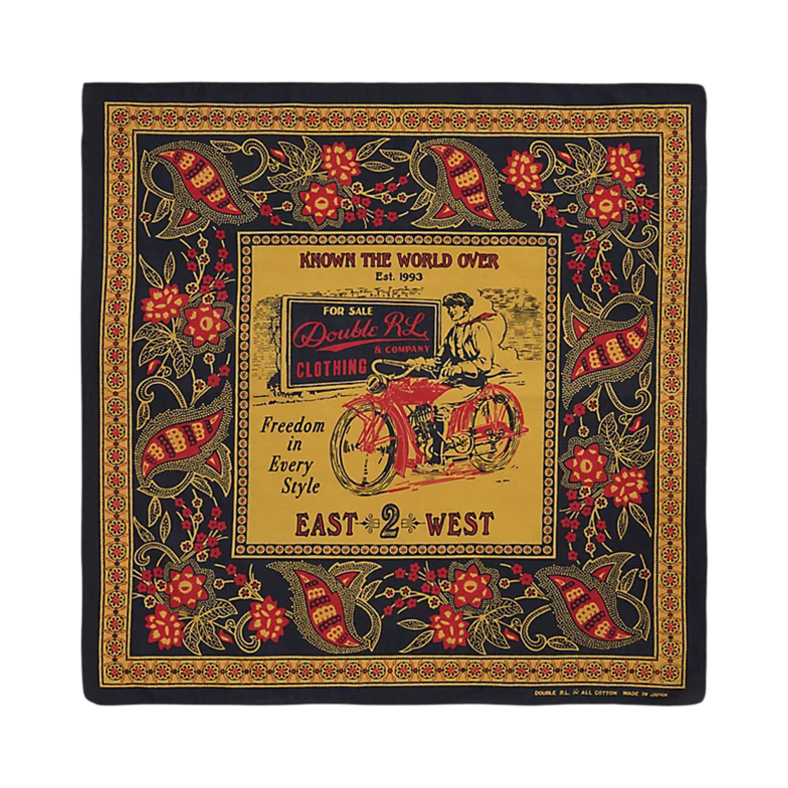 더블알엘 모터사이클리스트 프린트 코튼 반다나 네이비 옐로우 레드