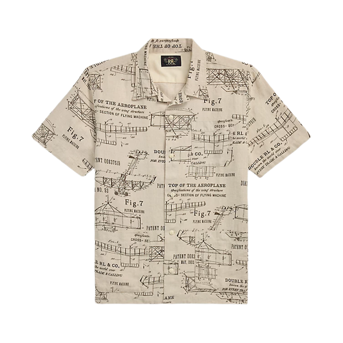 더블알엘 에어플레인 프린트 리넨 캠프 셔츠 크림 브라운