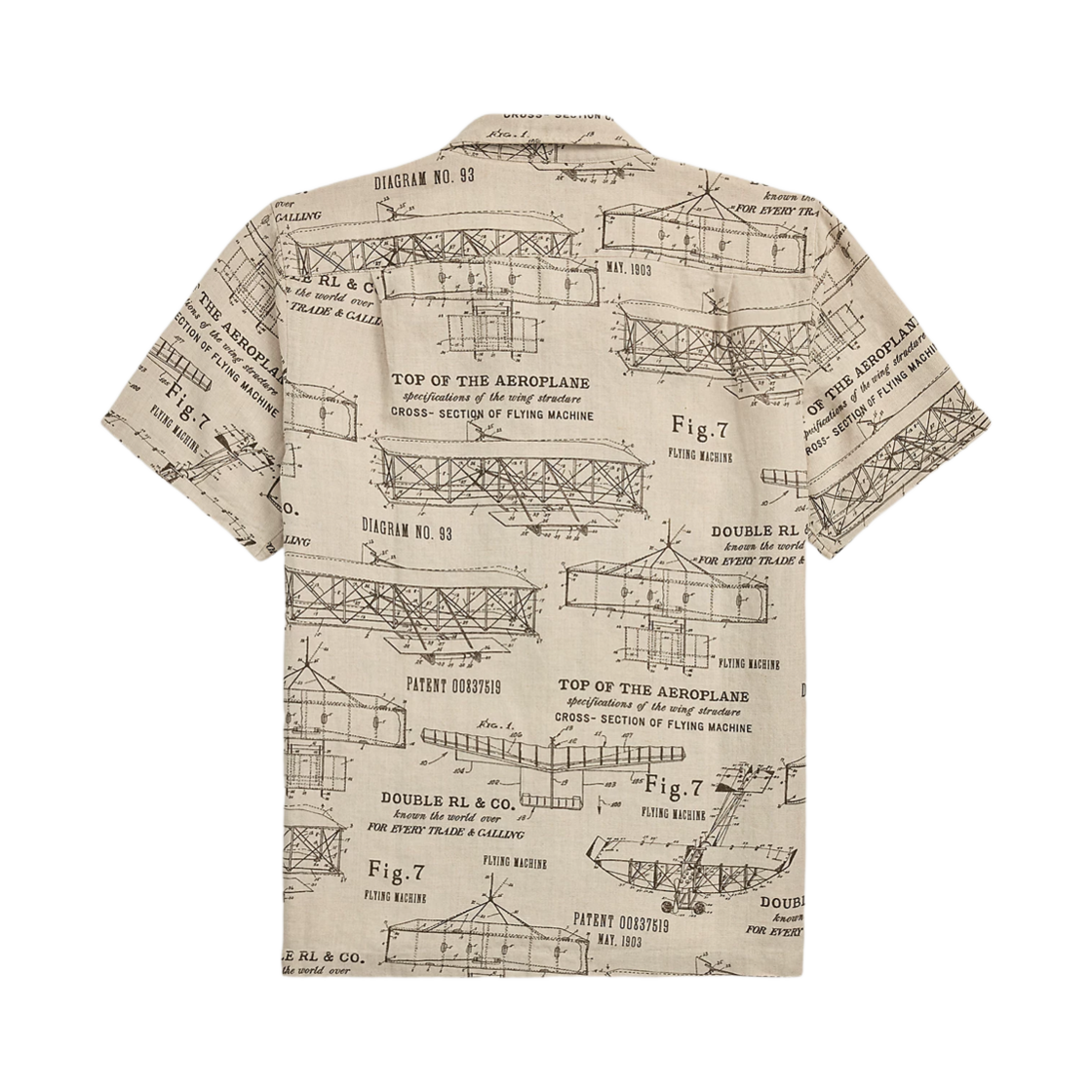 Double RL Airplane Print Linen Camp Shirt Cream Brown