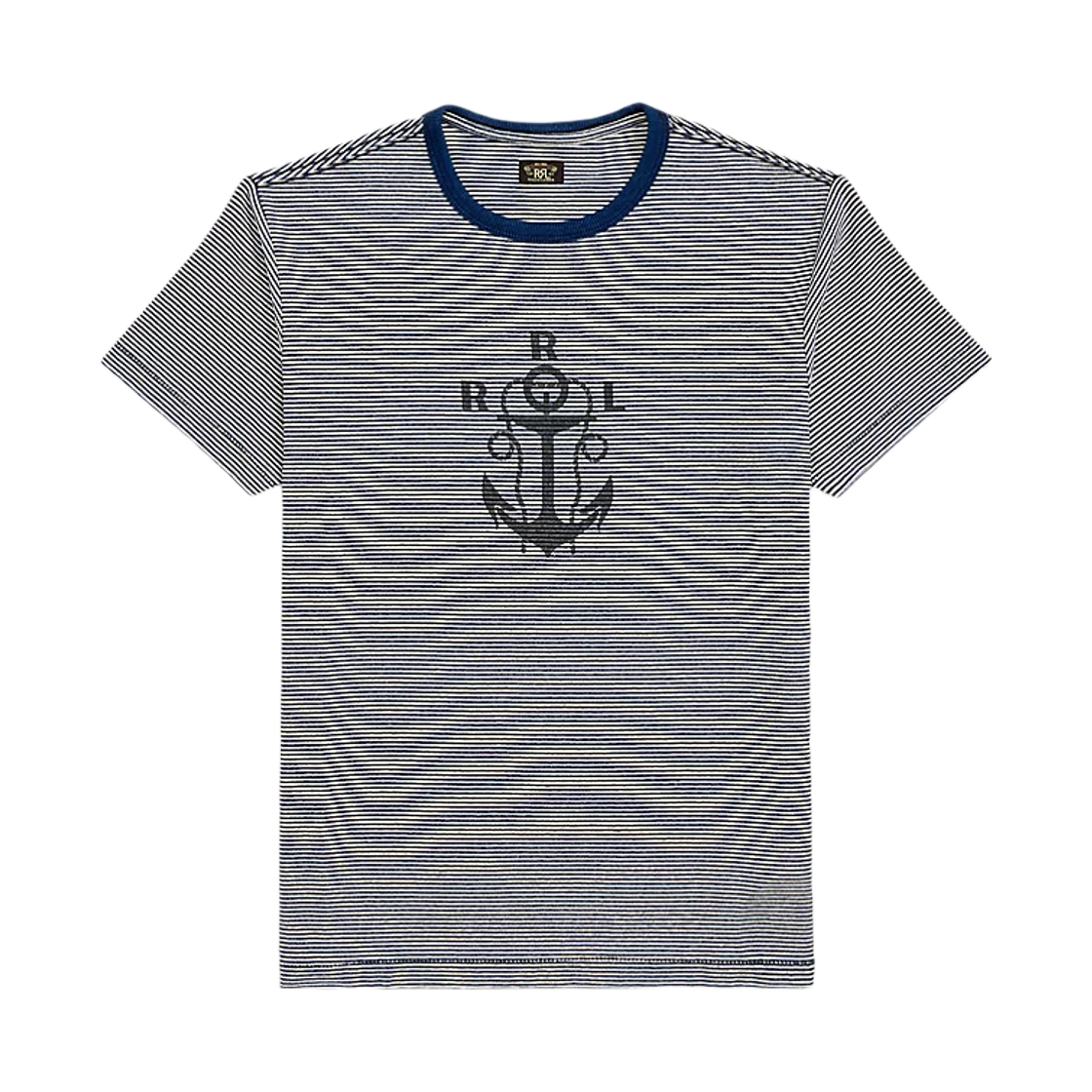 더블알엘 스트라이프 로고 저지 티셔츠 인디고 멀티