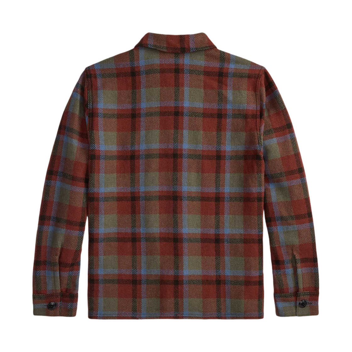 Double RL Plaid Wool Twill Shirt Jacket Maroon Plaid