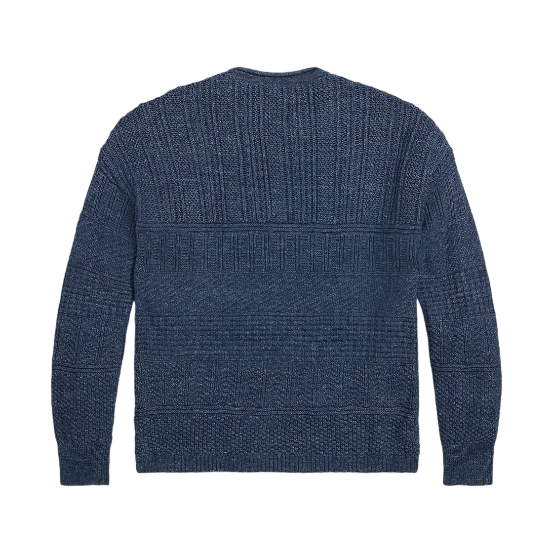 Double RL Cotton Linen Roll Neck Sweater Blue Multi