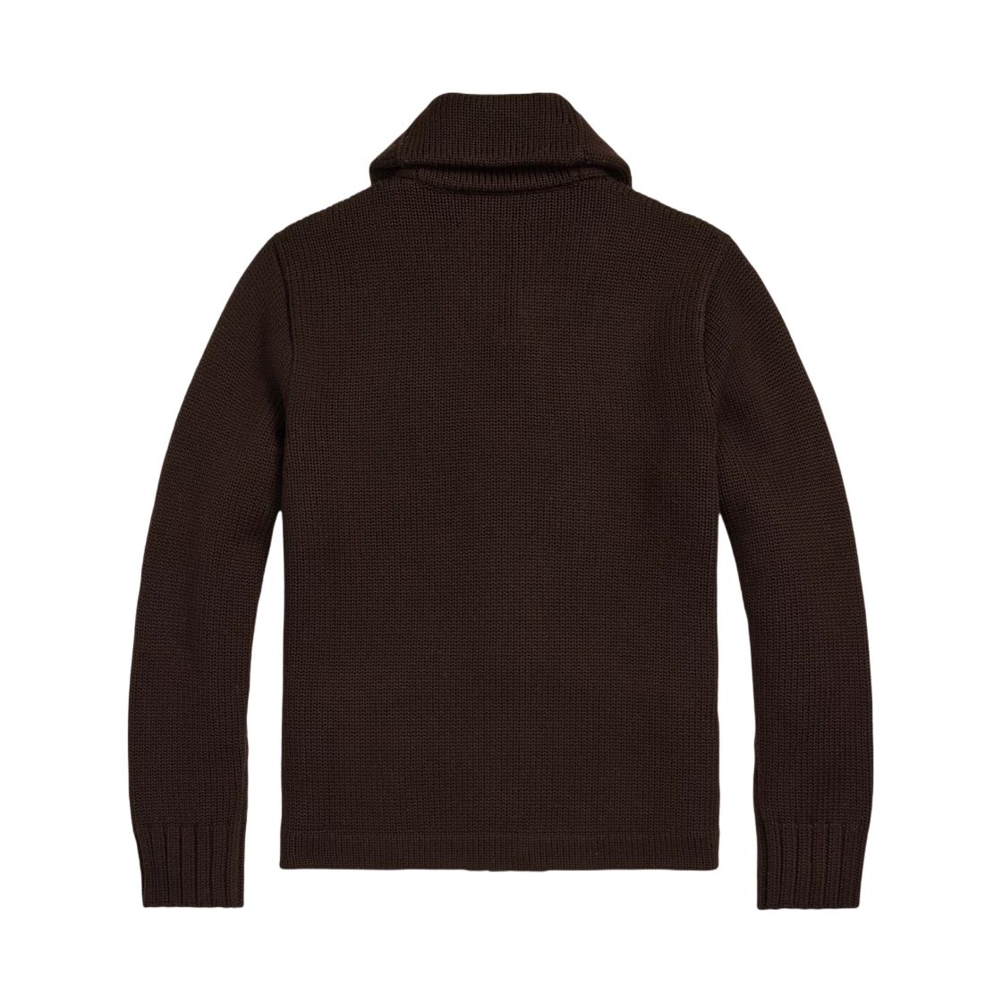 Double RL Applique Wool Shawl Collar Cardigan Brown
