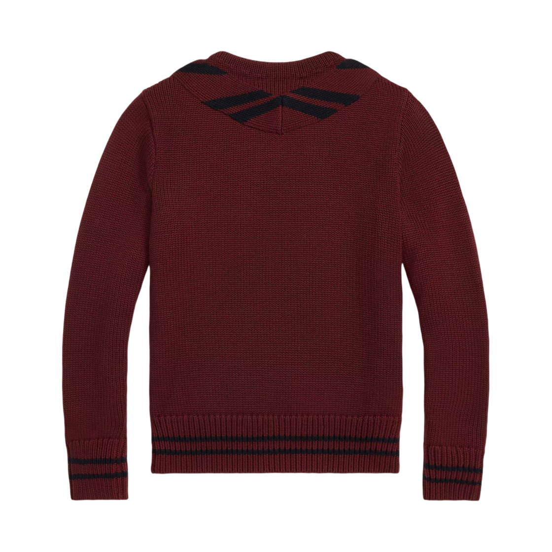 더블알엘 아플리케 울 스웨터 마룬 네이비