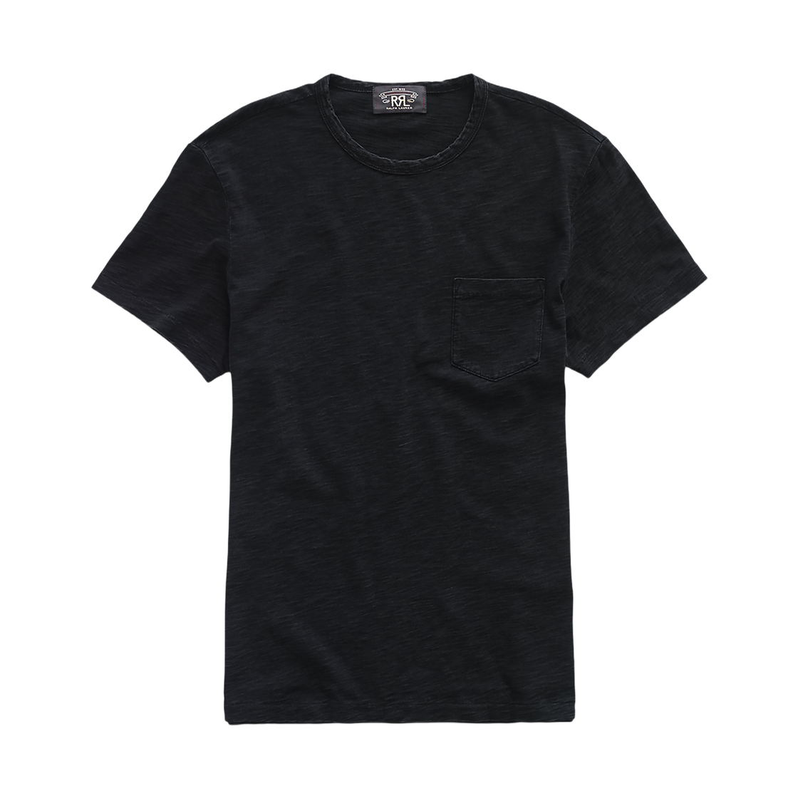 더블알엘 인디고 코튼 크루넥 티셔츠 블랙 인디고
