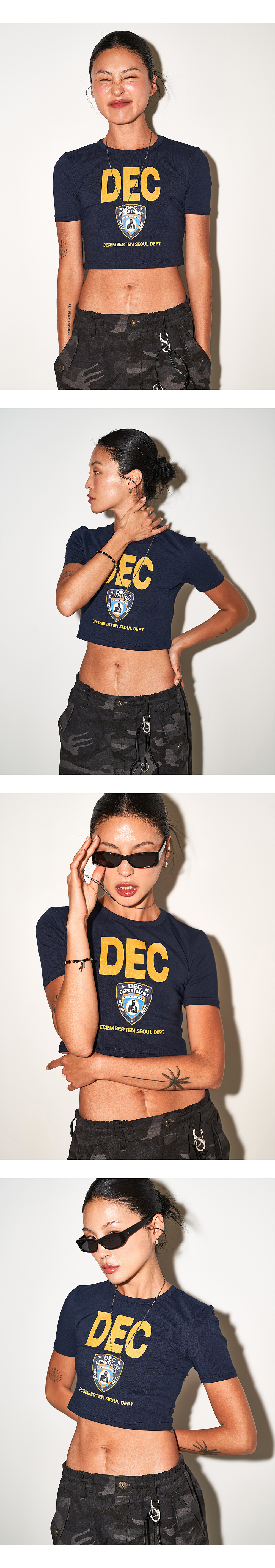 디셈버텐 폴리스 디티피 숏슬리브 크롭 티셔츠 네이비