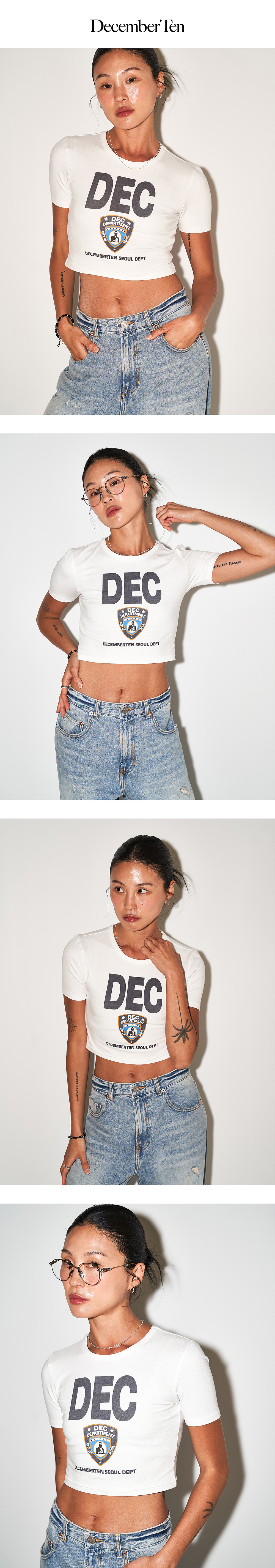 디셈버텐 폴리스 디티피 숏슬리브 크롭 티셔츠 화이트