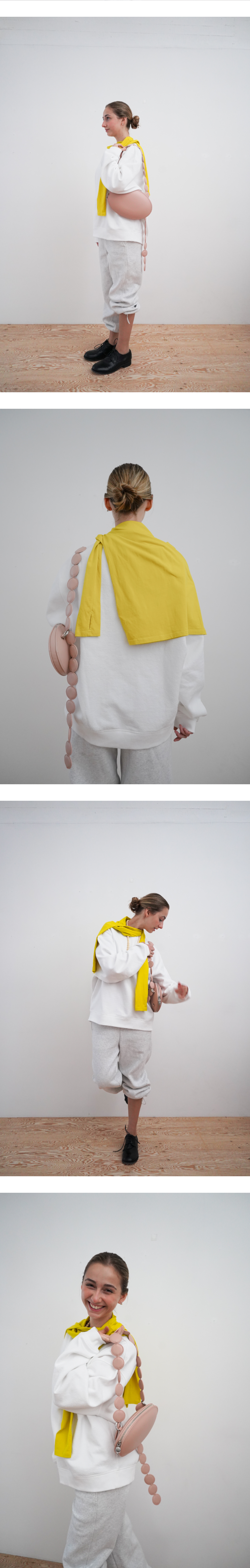 볼록하게 볼륨감 있는 바디와 동그란 알맹이들이 꿰어있는 끈이 특징입니다. 어느 방향으로든 멜 수 있고, 자유자재로 끈 길이를 조절할 수 있는 무한한 매력이 있는 백 입니다. 나만의 밤볼레로 착용해 보세요! 제품의 바디는 단단하지 않으며 적당한 물렁함을 가졌습니다. -MATERIAL Cow leather 100% 이탈리아 Mastrotto사 최고급 소가죽이 사용되었습니다. Inner is suede. 2way metal zipper (YKK) -SIZE(cm) BODY - 30*19.5 STRAP - length 110 / width 4