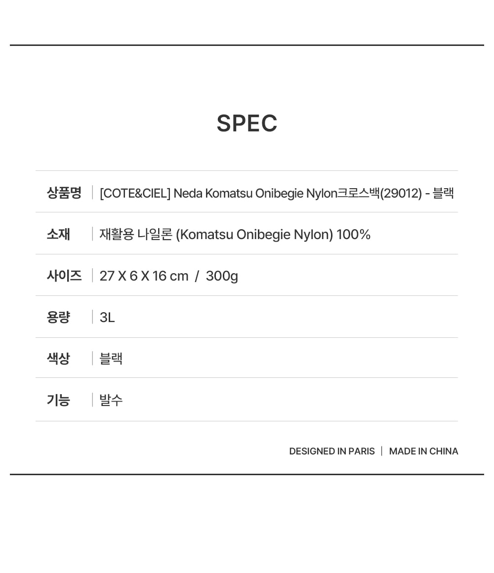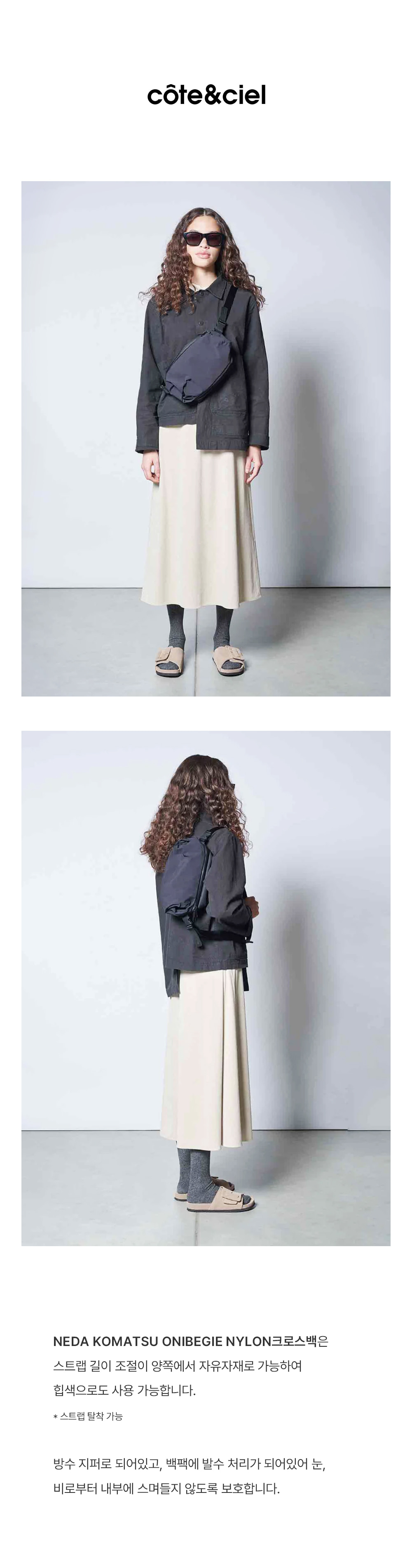 꼬떼시엘 네이더 코마츠 오니베기 나일론 크로스백(29012) - 블랙