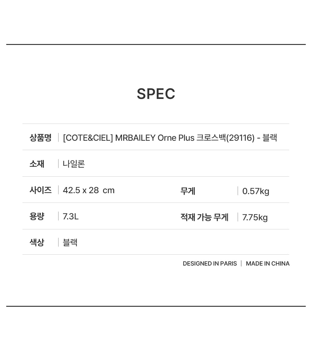 꼬떼시엘 미스터베일리 오네 플러스 크로스백(29116) - 블랙