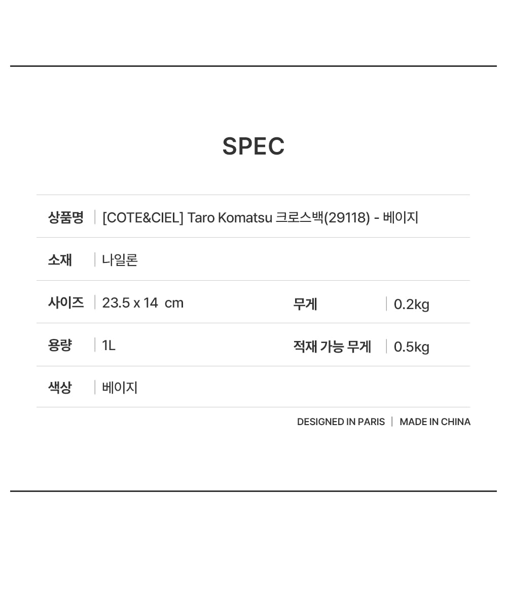 꼬떼시엘 타로 코마츠 크로스백(29118) - 베이지