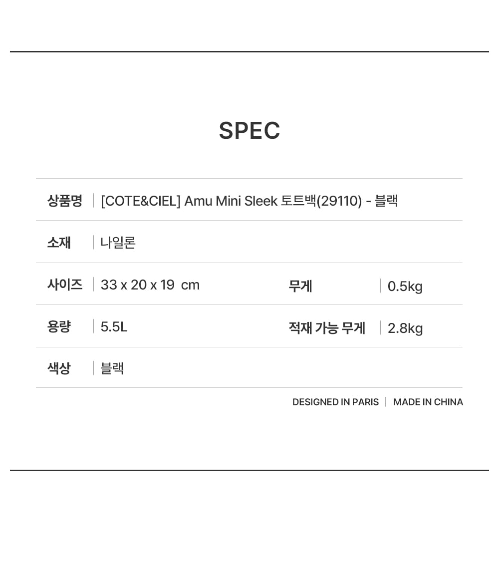 꼬떼시엘 아무 미니 슬릭 토트백(29110) - 블랙