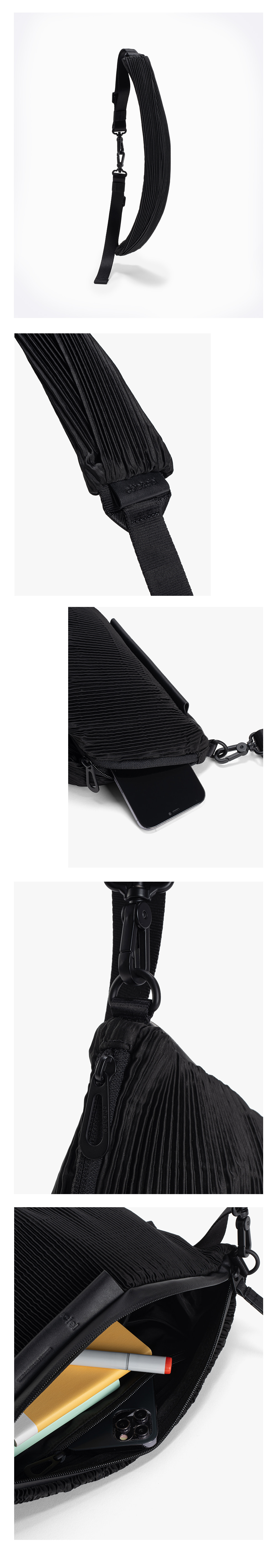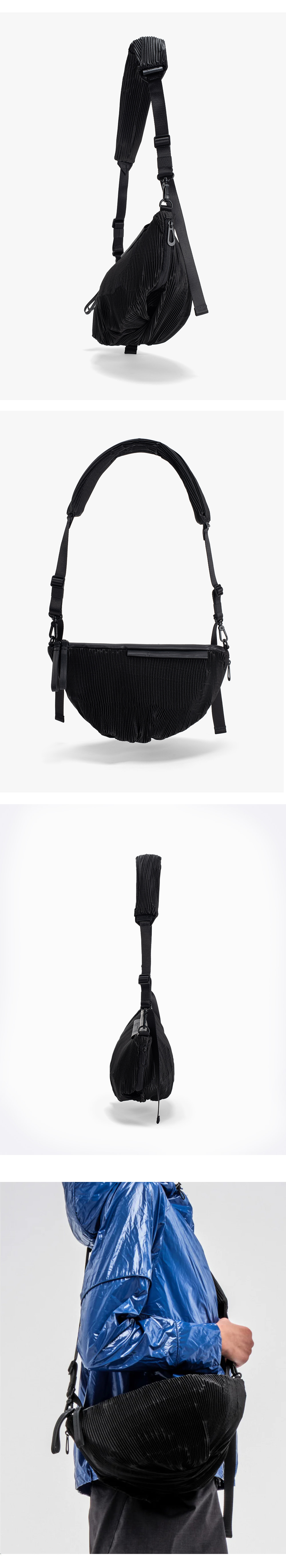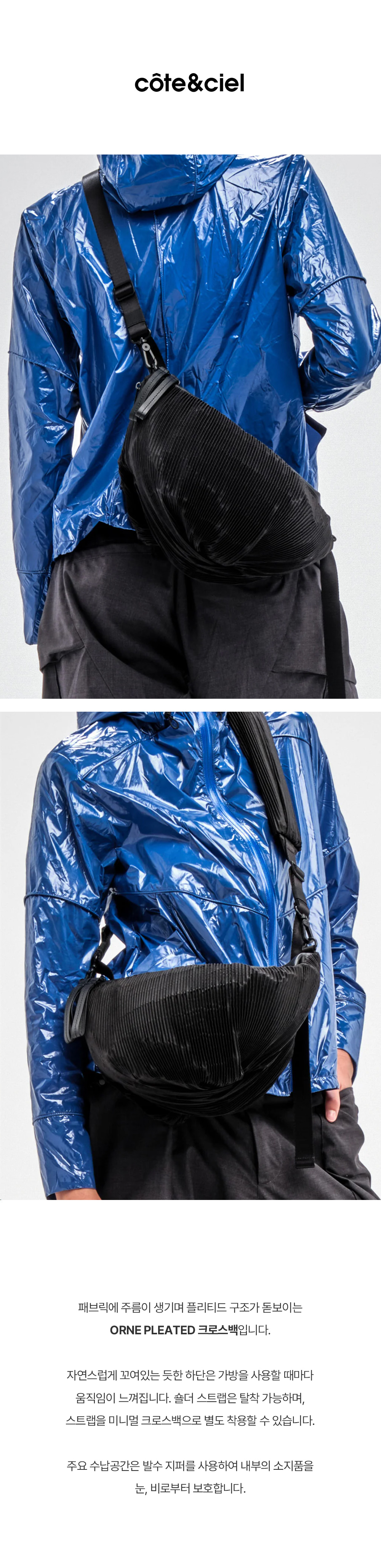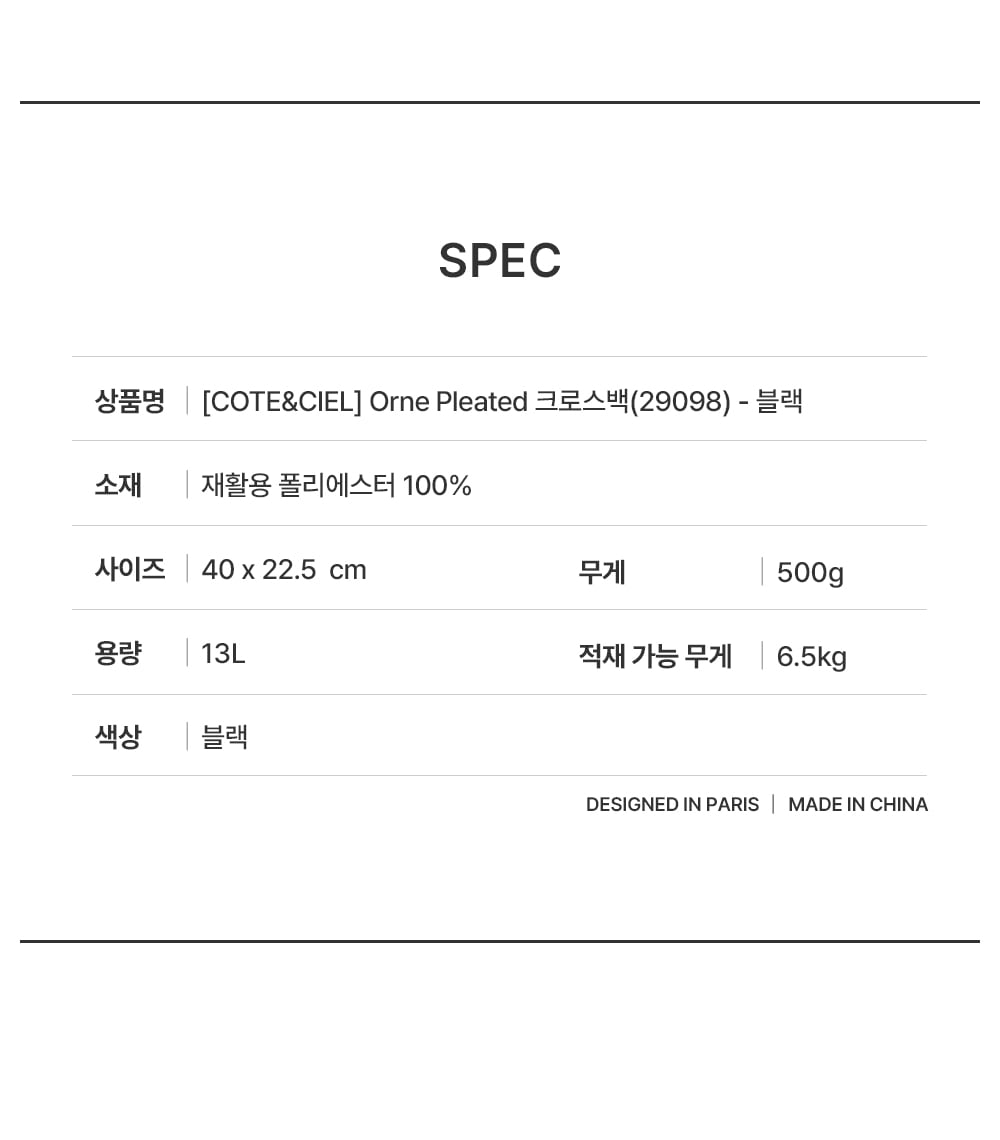 꼬떼시엘 오네 플리츠드 크로스백(29098) - 블랙