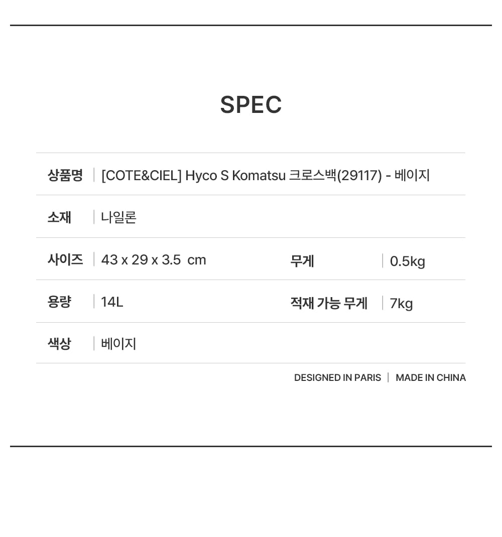 꼬떼시엘 하이코 S 코마츠 크로스백(29117) - 베이지